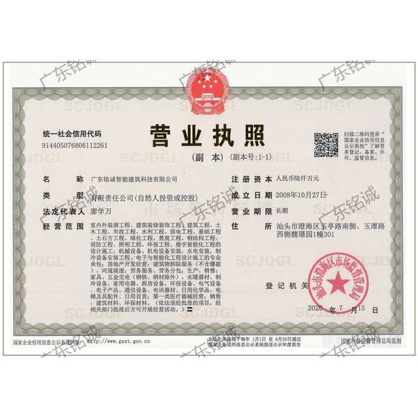 廣東銘誠智能建筑科技有限公司成立于2008年,公司注冊資金為6000萬元,集辦公裝修、酒店裝修、家庭裝修、軟裝裝飾、娛樂場所裝修為一體的裝飾公司,率先提出“創(chuàng)造現(xiàn)代人文空間,挑戰(zhàn)業(yè)界高峰”的雄壯口號,并以此為目標(biāo),完成了一大批具有影響力的大型公裝工程:其中包括廣州國際中醫(yī)藥展貿(mào)中心、奧飛澄海音樂廳、澄海區(qū)國家稅務(wù)局、澄海興信小額貸款、澄海潮商村鎮(zhèn)銀行、汕頭龍湖賓館、澄海豪庭大酒店、御園國際飲食城、澄海福晉軒酒家、享樂匯保健有限公司、假日商務(wù)酒店、尚景康園物業(yè)、星輝車模股份有限公司、奧飛動漫有限公司、香港國際玩具、汕頭萬基貿(mào)易有限公司、泰興源實業(yè)有限公司、汕頭皇冠玩具有限公司等;家裝工程包括南澳黃金海岸整幢的精裝房、中信華府、富春華庭、金信鳳凰名城、凱旋花園、中信金城、柏嘉半島、陽光海岸、金葉島等高等住宅。 ? 廣東銘誠智能建筑科技有限公司經(jīng)過十余年的建筑裝飾裝修施工領(lǐng)域項目積淀,于2018年2月取得“建筑裝修裝飾工程專業(yè)承包二級”、“建筑機(jī)電安裝工程專業(yè)承包三級”、“建筑工程施工總承包三級”、“施工勞務(wù)不分等級”、“安全生產(chǎn)許可證”等專業(yè)資質(zhì),并于2021年8月建筑裝修資質(zhì)正式升級為“建筑裝修裝飾工程專業(yè)承包一級”。這是對企業(yè)規(guī)模、工程業(yè)績、管理水平、誠信表現(xiàn)的肯定,是企業(yè)實力與能力的展現(xiàn)。 ? 公司每一項工程都始終堅持“精美設(shè)計、精心施工、確保合同承諾;勤奮開拓、追求突出、創(chuàng)造時代精品”的質(zhì)量方針,力爭做一項工程,樹一座豐碑。 ? ?銘誠擁有一支由專業(yè)的營銷精英和客戶顧問組成的營銷隊伍,勤奮、敬業(yè)的每一位銘誠員工將本著“贏在別人休息時”的專業(yè)精神,為客戶提供全程營銷及售后服務(wù),確保客戶的合法利益,提供體貼周到的服務(wù),做到讓顧客滿意。 ? 銘誠擁有一批資老牌室內(nèi)環(huán)境設(shè)計師,以“現(xiàn)代人文空間”為設(shè)計理念,為客戶提供人性化、差異化、智能化的室內(nèi)環(huán)境設(shè)計服務(wù),準(zhǔn)確的將人性化特點與室內(nèi)環(huán)境相融合,達(dá)到了“現(xiàn)代人文空間”的和諧統(tǒng)一。 ? ? ? ?自主創(chuàng)新、視社會責(zé)任為己任的精神使我們在發(fā)展的道路上屢獲殊榮:不斷提升的銘誠品牌知名度和美譽度,靠的是優(yōu)質(zhì)的產(chǎn)品,靠的是不斷提升的營業(yè)績,靠的是國內(nèi)的核心技術(shù)和誠信的服務(wù)。相信通過銘誠人的努力,銘誠將會不斷以新的姿態(tài)為提升廣大消費者的生活質(zhì)量做好服務(wù),為中國裝飾行業(yè)設(shè)計創(chuàng)新做出突出貢獻(xiàn)。 ? ? “忘掉競爭、共